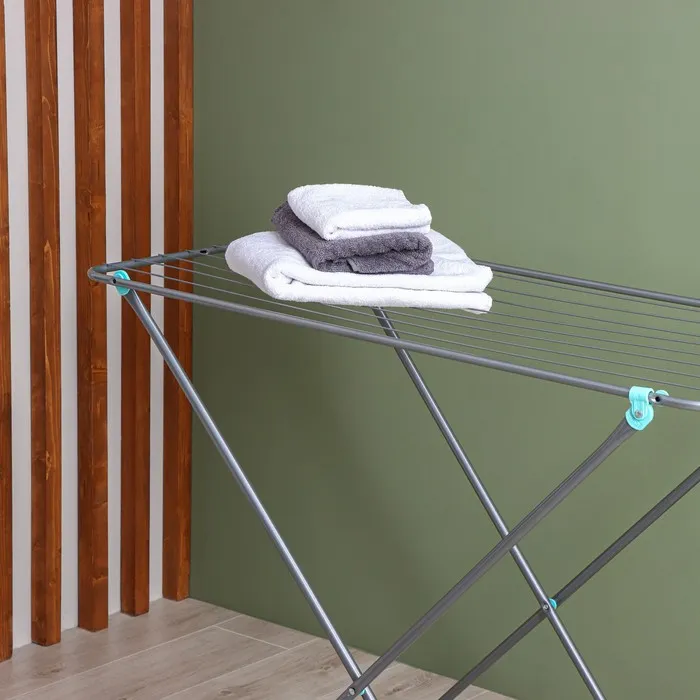 Компактная складная напольная сушилка для белья, подходит для использования в небольших помещениях.