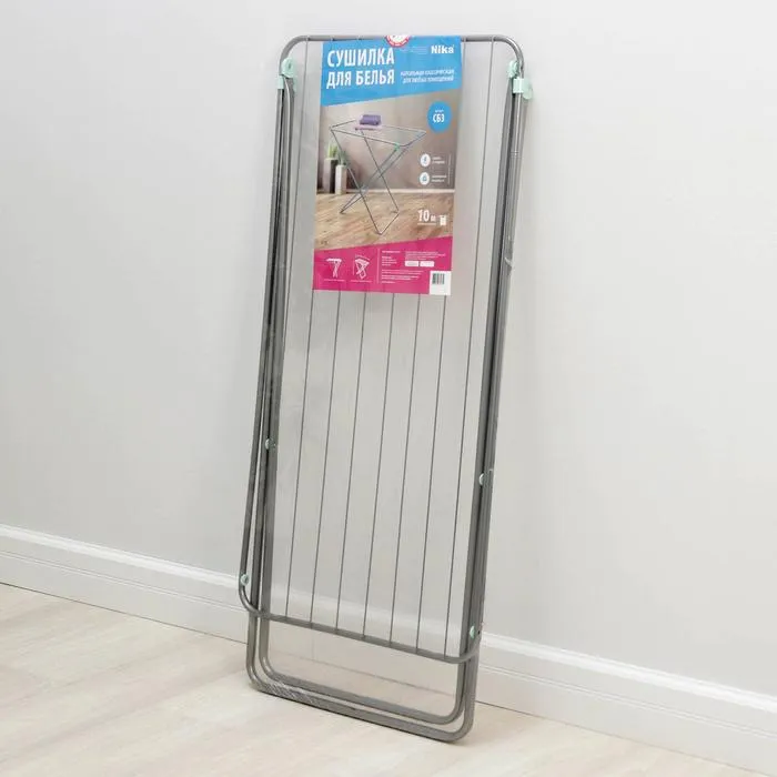 Сушилка для белья напольная складная, рабочая длина 10 м, серая — Характеристики