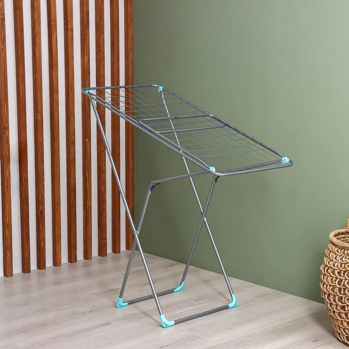 Сушилка легко и аккуратно складывается, не занимая много места при хранении. Общая длина реек 20 метров — хватит на большую стирку! Оптимальная высота 95 см позволяет комфортно развесить вещи, не нагибаясь. Нейтральная расцветка не будет бросаться в глаза, и сушилка отлично впишется в любой интерьер. Изделие выдерживает до 17 кг.