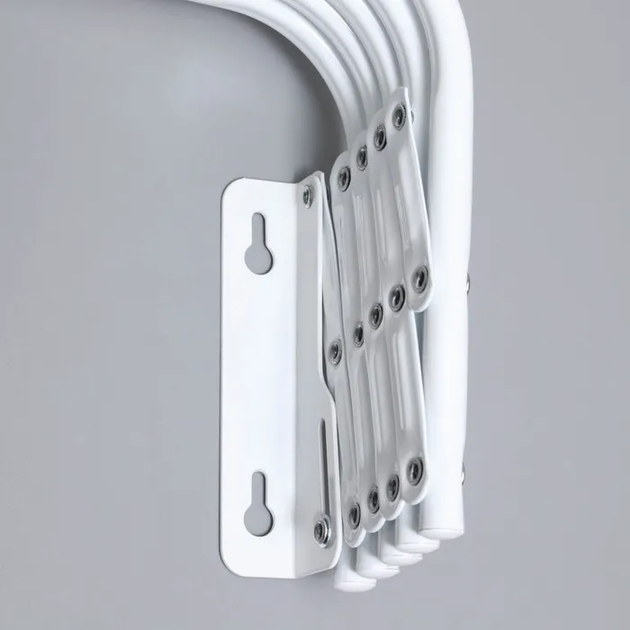 Настенная сушилка для белья спроектирована по принципу гармошки — идеальный вариант для любых, даже небольших помещений. Благодаря особой раскладывающейся конструкции сушилка занимает совсем немного места.