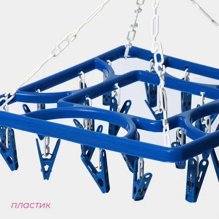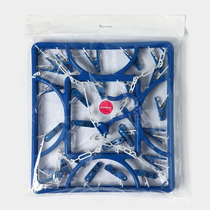 Сушилка для белья подвесная квадратная Доляна, 24 прищепки, синяя — Характеристики