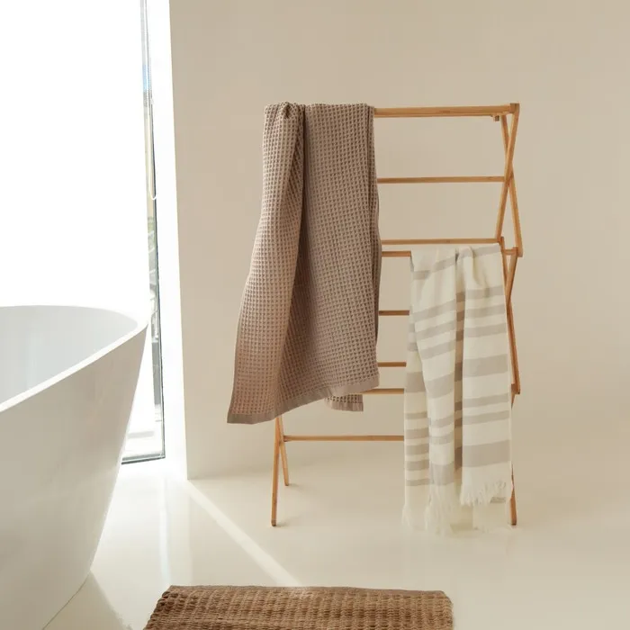 - Эко-материалы: Изготовлена из натурального бамбука, сушилка не только выглядит стильно, но и абсолютно безопасна для здоровья и окружающей среды.