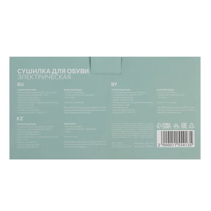 Сушилка для обуви Luazon LSO-05, 12 Вт, индикатор, МИКС — Характеристики