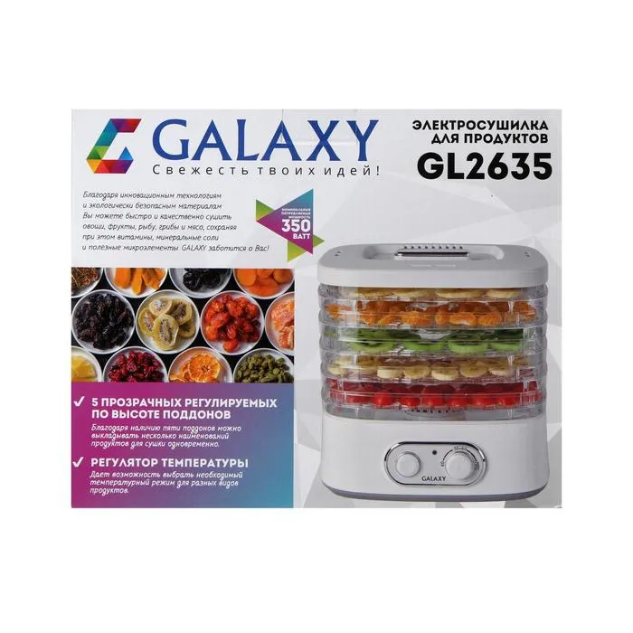 Сушилка для овощей и фруктов Galaxy GL 2635, 350 Вт, 5 ярусов, белая — Характеристики
