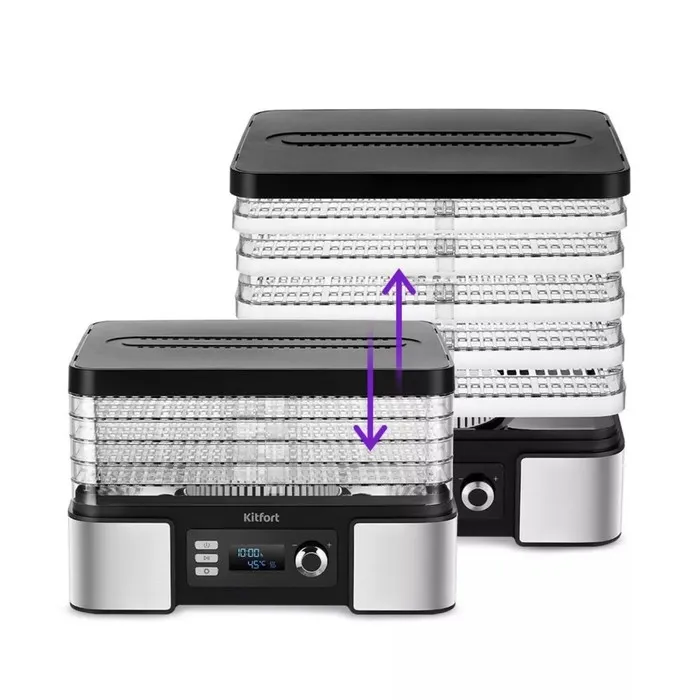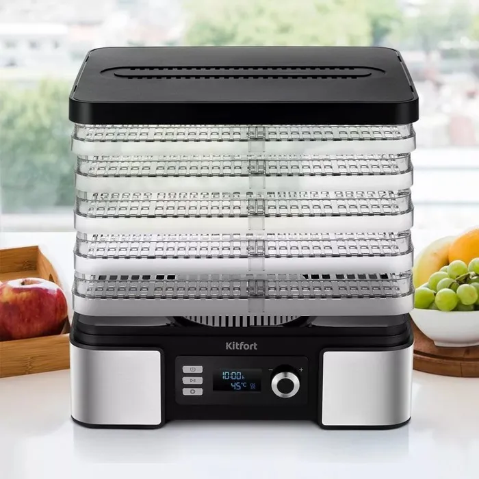 Сушилка для овощей и фруктов Kitfort КТ-1957, 450 Вт, 5 ярусов, таймер, серебристо-чёрная — Характеристики