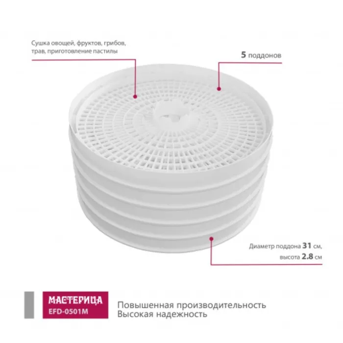 Сушилка для овощей и фруктов «Мастерица EFD-0501M», 125 Вт, белая — Характеристики