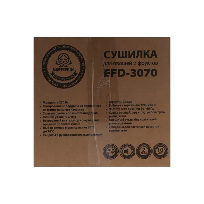 Сушилка для овощей и фруктов "Мастерица" EFD-3070, 250 Вт, 7 ярусов, чёрно-золотистая — Характеристики