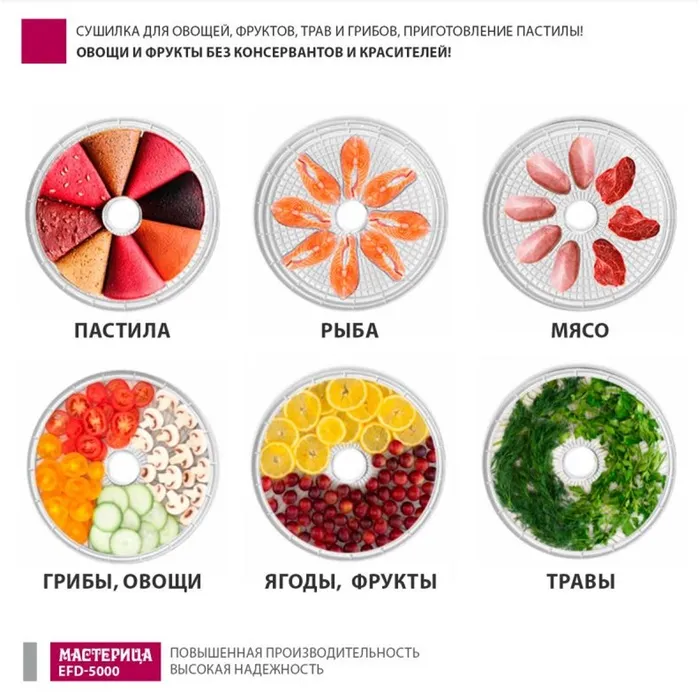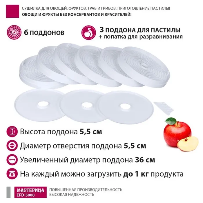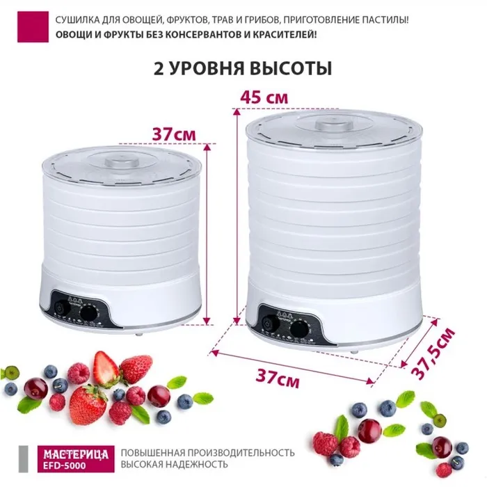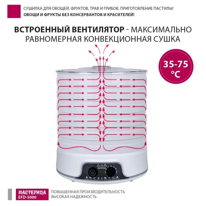 Сушилка для овощей и фруктов "Мастерица" EFD-5000, 500 Вт, 6 ярусов, белая — Характеристики