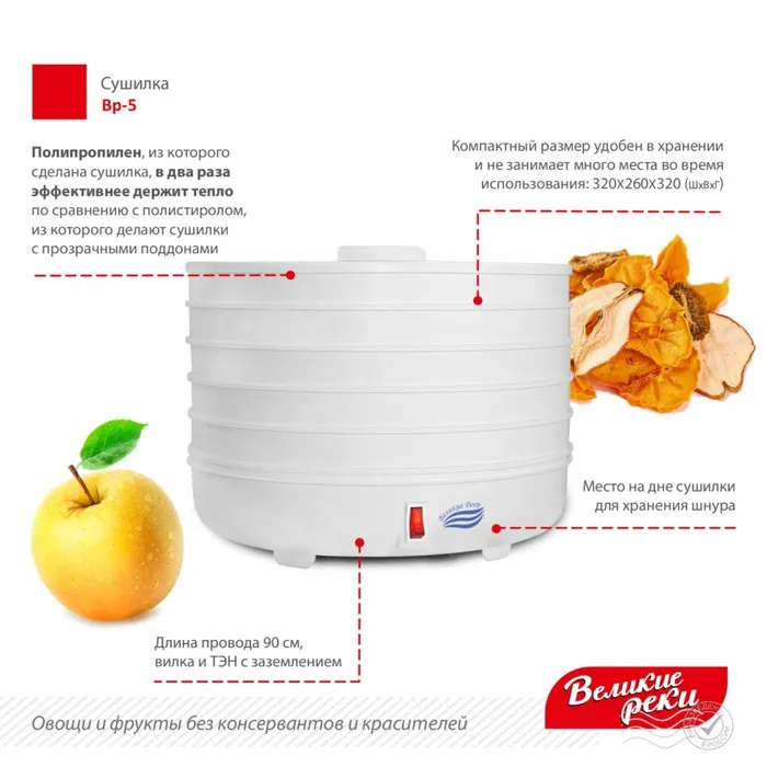 Выбирая эту сушилку, вы получите надежного помощника для сохранения свежести и полезных свойств продуктов, а также сэкономите время и пространство на кухне. Её простота, эффективность и компактность делают её идеальным выбором для вашего дома!