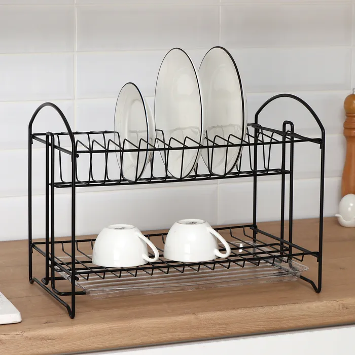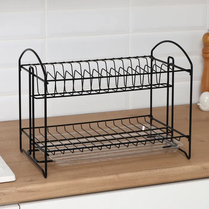 Сушилка для посуды с поддоном 2-х ярусная, разборная, 39,5×24×29,5 см, черный — Характеристики