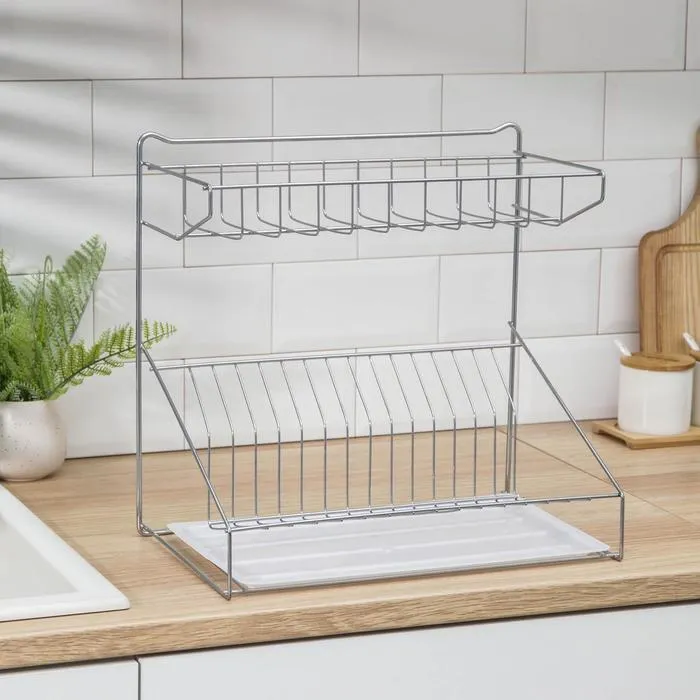 Посудосушитель с поддоном - популярный кухонный аксессуар, практичный и долговечный в использовании, благодаря материалу, устойчивому к воздействию влаги. А поддон посудосушителя защищает дно кухонного шкафчика от капель воды.