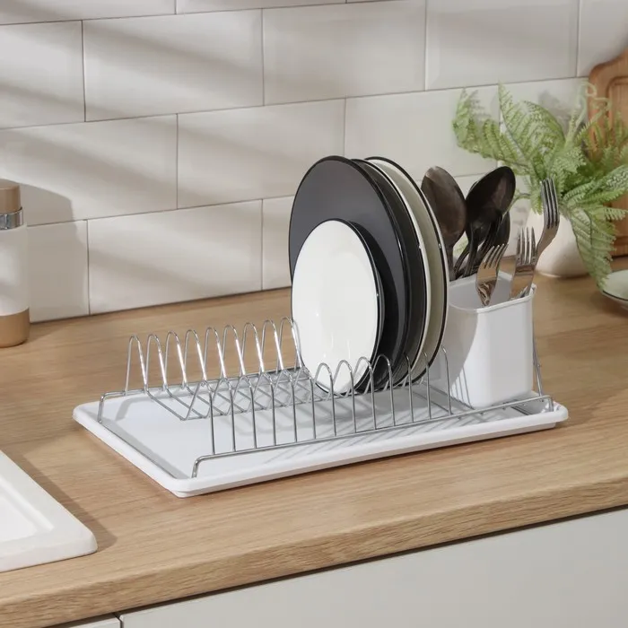 - Сушка для посуды - имеет поддон, в который стекает вода. Поддон легко моется и чистится после использования.