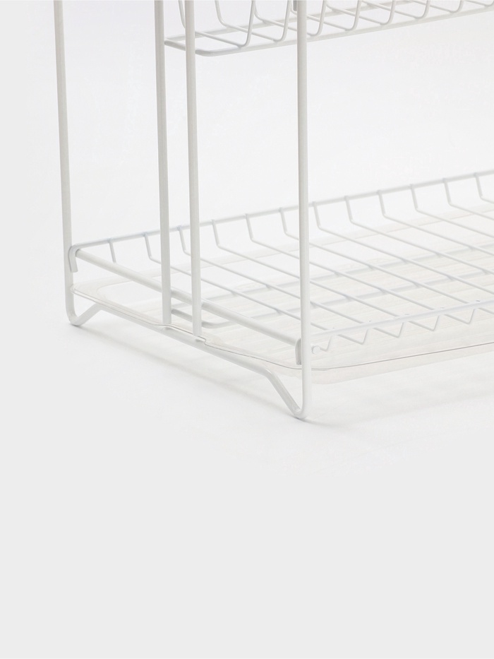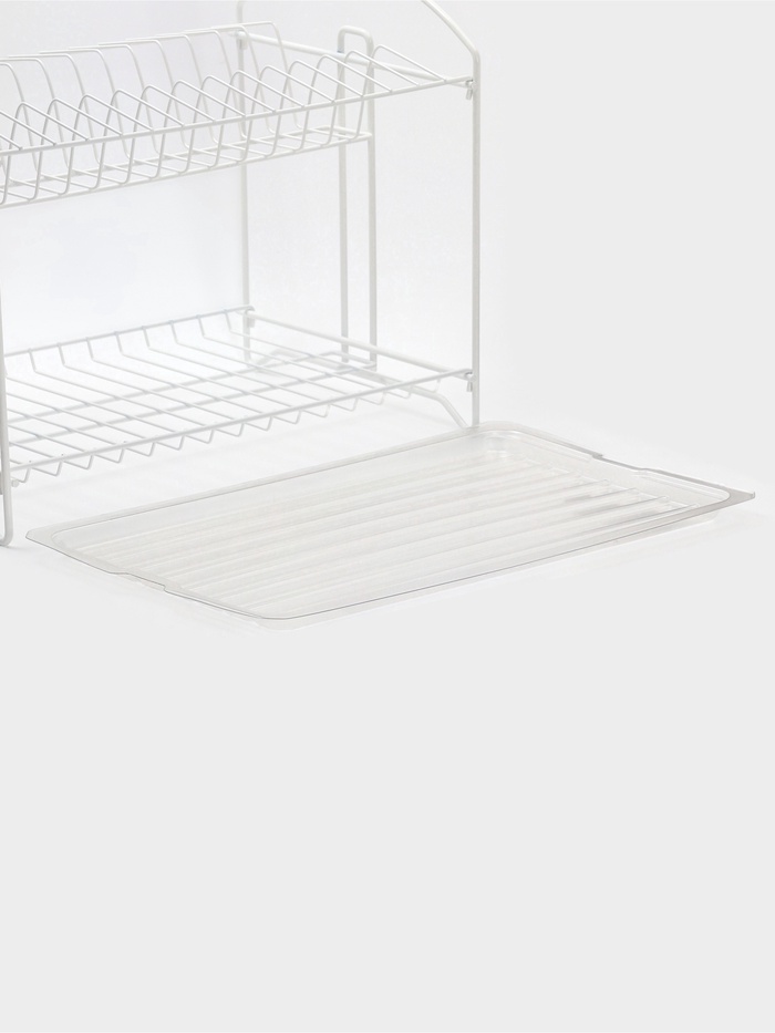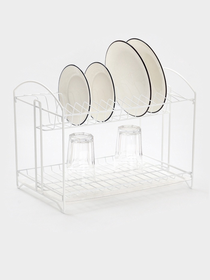 Эта сушилка — для тех, кто ценит гибкость: разобрал, убрал, собрал снова. Два яруса упорядочивают посуду, поддон удерживает влагу, а белый цвет добавляет ”свежести” даже в самый загруженный день. Чистота — это не усилие, а логичный результат продуманного решения.