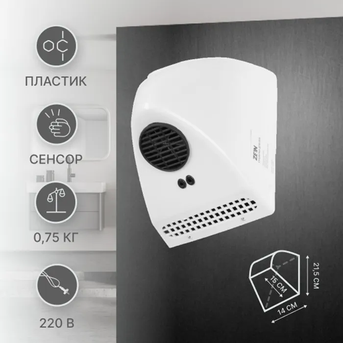 Сушилка для рук ZEIN HD226 — компактное и экономичное устройство мощностью 0,85 кВт.