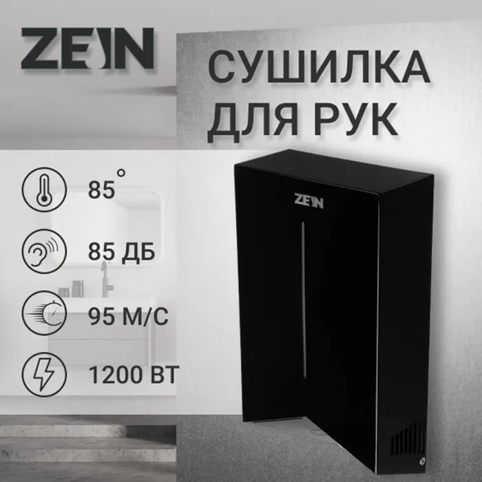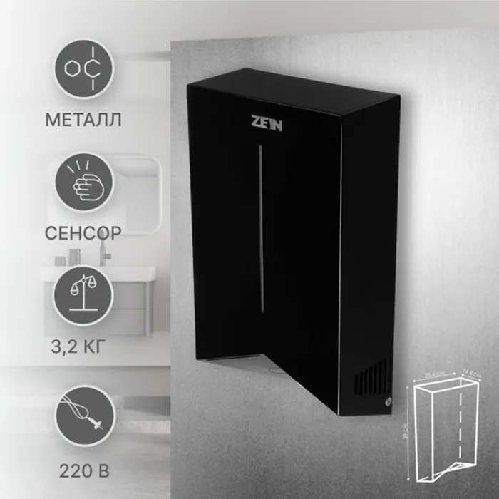 Сушилка для рук ZEIN Hd=227 Black, 1.2 кВт, 234×144×390 мм, черная — Характеристики