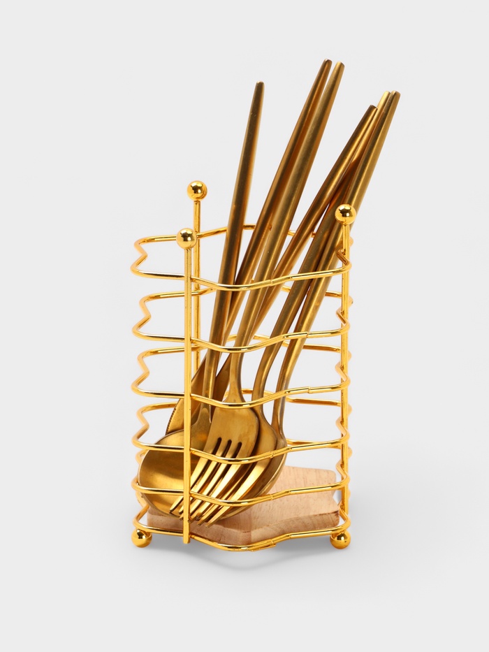 Сушилка для столовых приборов «Старлайт» — компактное и стильное решение для аккуратной сушки вилок, ложек и ножей. Её золотистое исполнение вносит нотку утончённости даже в самый функциональный уголок кухни, а миниатюрные габариты позволяют разместить её там, где места в обрез.