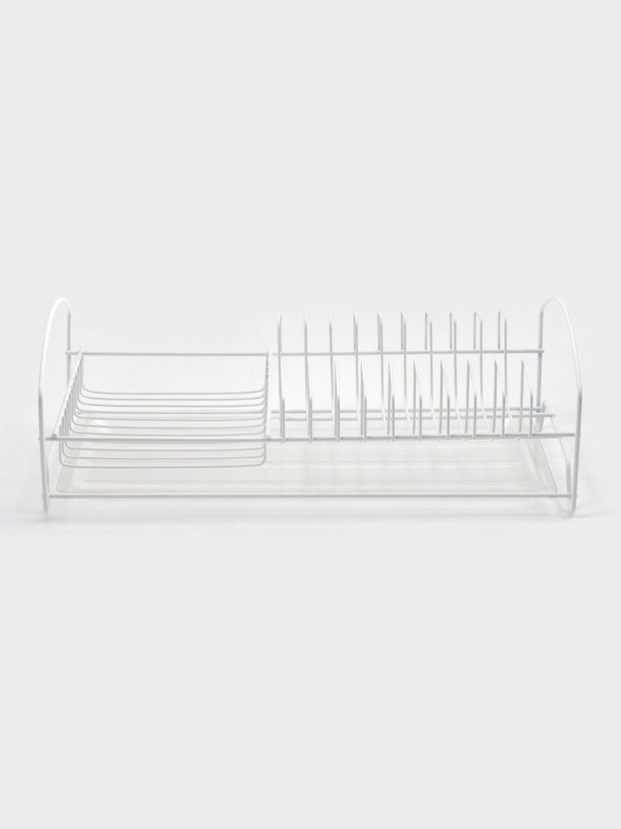 Сушилка для посуды с поддоном — практичный помощник на кухонной столешнице. Её компактные размеры (39×25×12 см) и белоснежный металлический каркас делают её незаметной, но крайне полезной: тарелки, кружки и столовые приборы сохнут быстро, а лишняя влага остаётся в съёмном поддоне, не растекаясь по поверхности.
