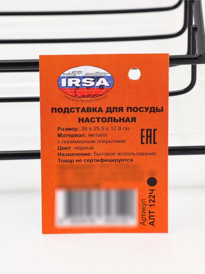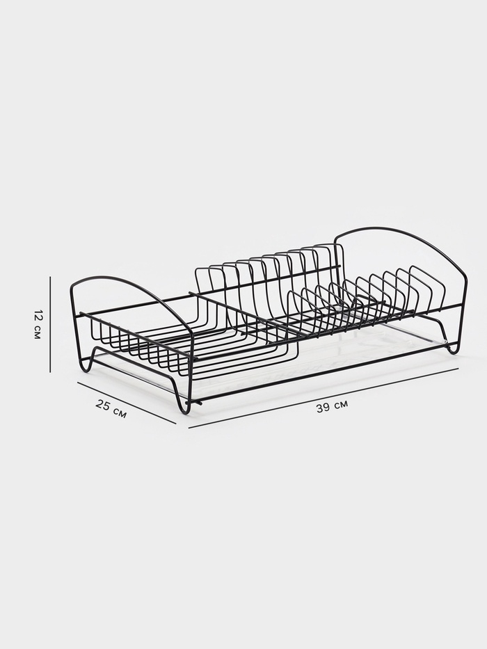 Сушилка для тарелок и кружек с поддоном, 39×25×12 см, чёрная — Характеристики