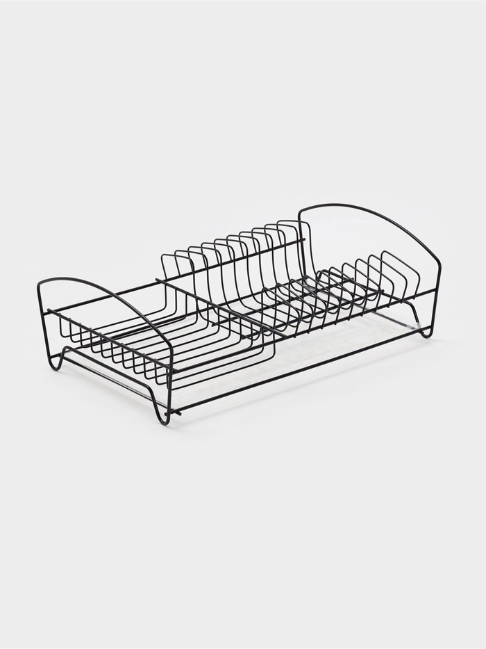 Чёрная сушилка для посуды — компактная подставка с поддоном для стекающей воды, созданная для тех, кто ценит порядок и сдержанный дизайн. Размеры 39×25×12 см позволяют разместить тарелки, кружки и столовые приборы даже на компактной кухне. Металлическая конструкция в чёрном исполнении не ржавеет, легко моется и гармонично вписывается в современные интерьеры — от минимализма до индустриального стиля.