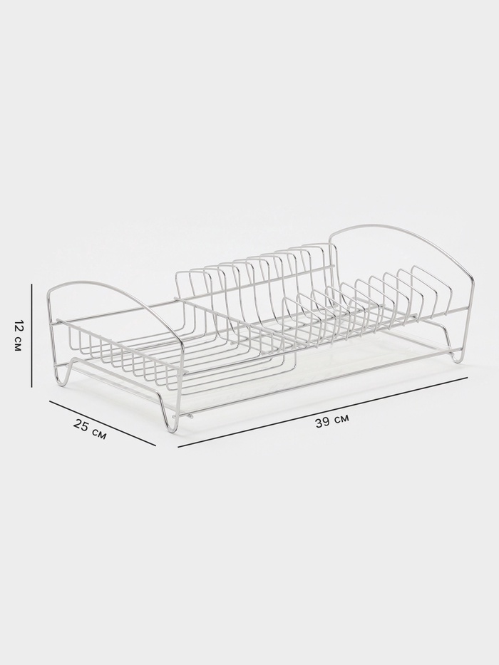Сушилка для тарелок и кружек с поддоном, 39×25×12 см, хром — Характеристики