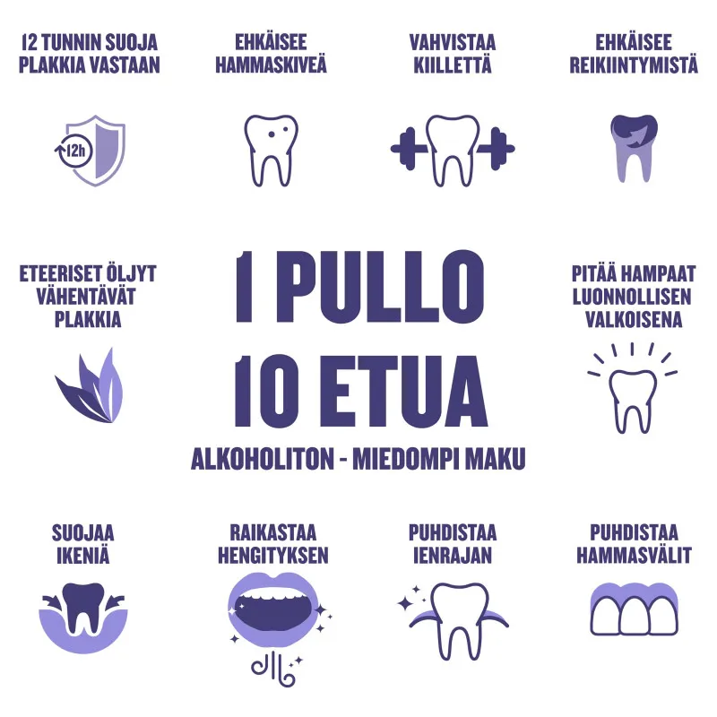 Этот ополаскиватель для рта станет отличным дополнением к вашей ежедневной гигиене полости рта. Благодаря мягкому вкусу и отсутствию алкоголя, он идеально подходит для всей семьи. Ваши зубы будут защищены, а дыхание останется свежим на протяжении всего дня.