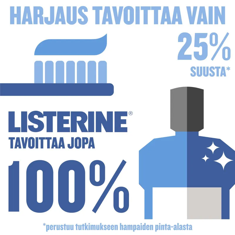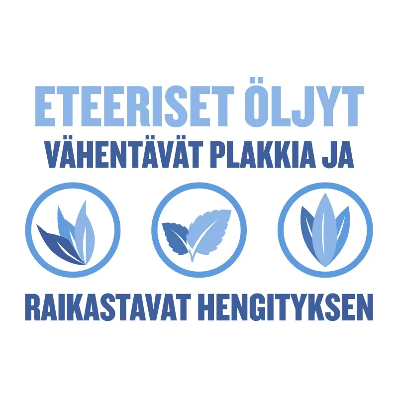 Эфирные масла в составе ополаскивателя снижают количество бактерий, образующих налет, очищая поверхность зубов и освежая дыхание. Содержит фтор (0,05 %), укрепляющий зубную эмаль и предотвращающий кариес.