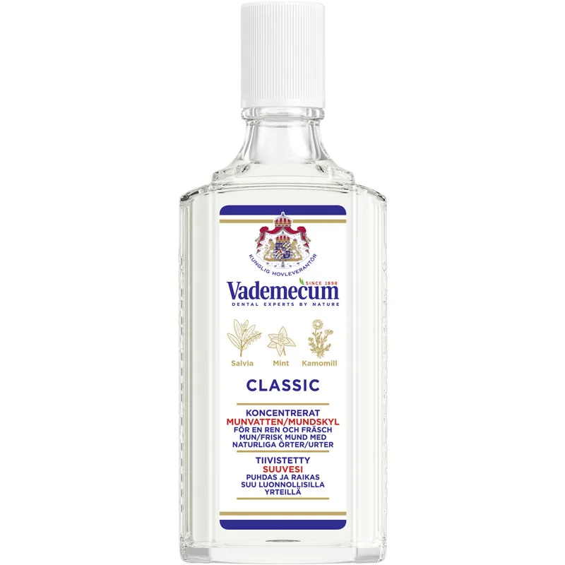 Ополаскиватель для рта Vademecum помогает поддерживать здоровье полости рта, обеспечивая свежесть дыхания и защиту от налета. Удобный размер флакона позволяет брать его с собой в дорогу.