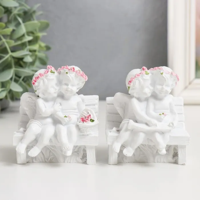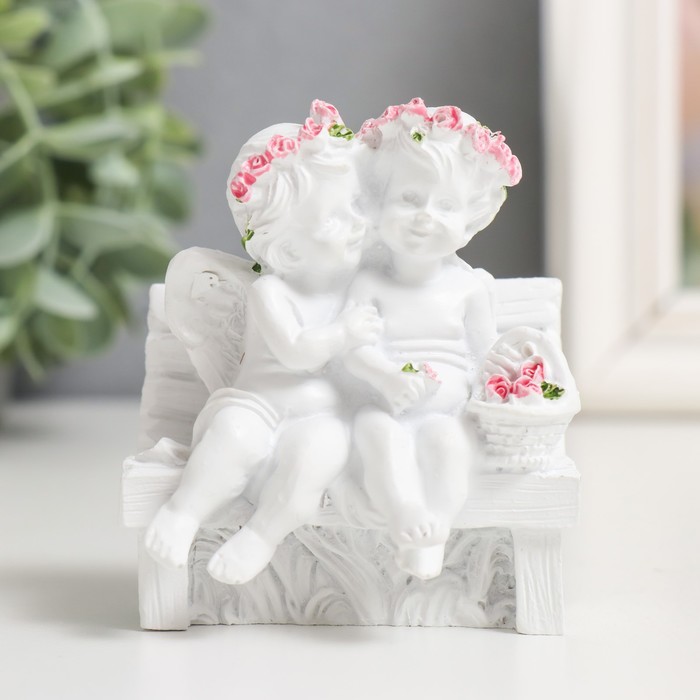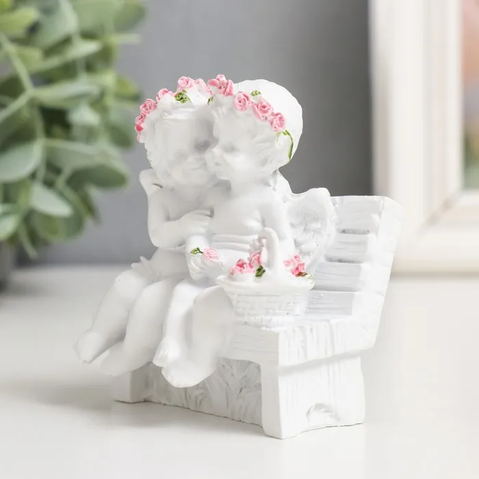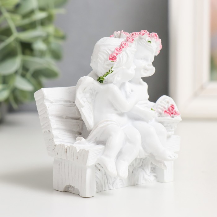 Сувенир "2 ангелочка в розовом веночке на скамейке" МИКС 8х7х5 см — Характеристики