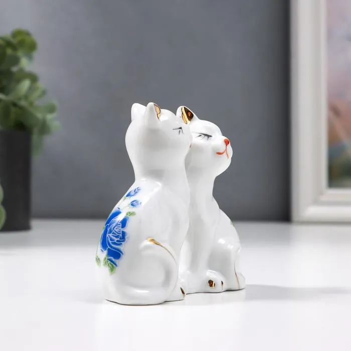 Сувенир керамика под фарфор "2 киски любовь" 20х10х5,5 см, стразы