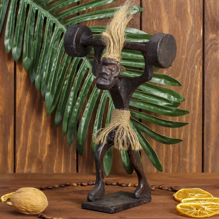 Сувенир «Абориген-штангист», 14×9×20 см, дерево — Характеристики