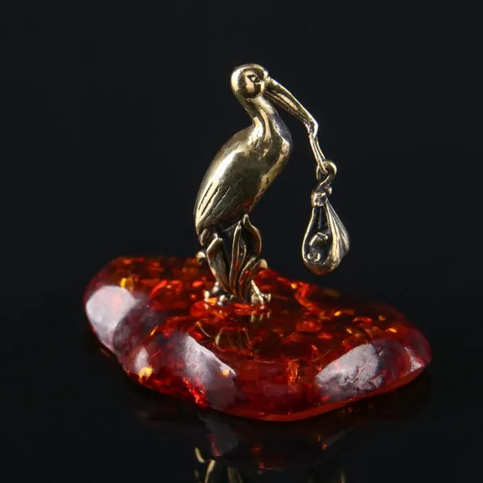 Сувенир из латуни и янтаря сможет стать самостоятельным подарком или необычным дополнением к нему и точно не останется без внимания.