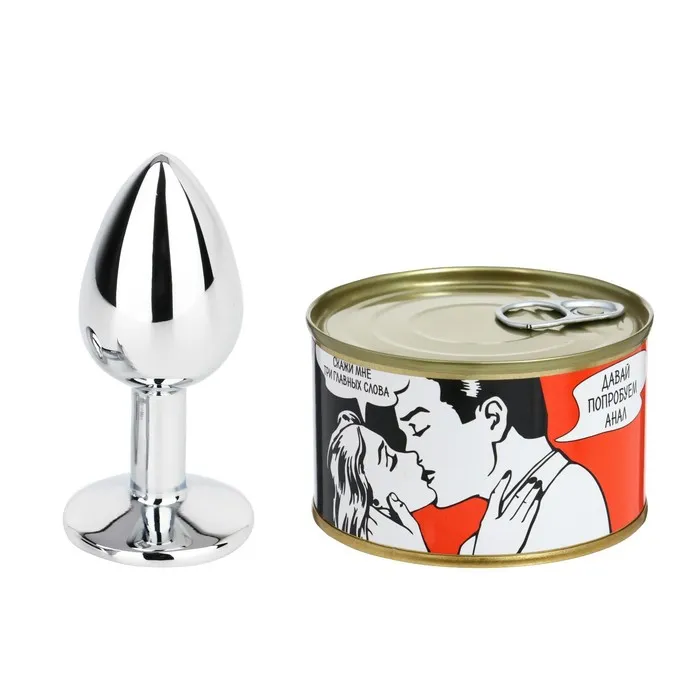 Анальная пробка из медицинской стали с кристаллом в консервной банке. Диаметр пробки 2,7 см, небольшой размер поможет постепенно растянуть и подготовить мышцу к анальному сексу. Анальная пробка подойдёт для ношения, ограничитель на основании не позволит игрушке ускользнуть в прямую кишку. Пробка подарит ощущение наполненности и создаст эффект двойного проникновения. Анальную пробку рекомендуется использовать с лубрикантом для анального секса он предотвратить неприятные ощущения и последствия.