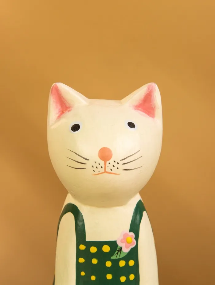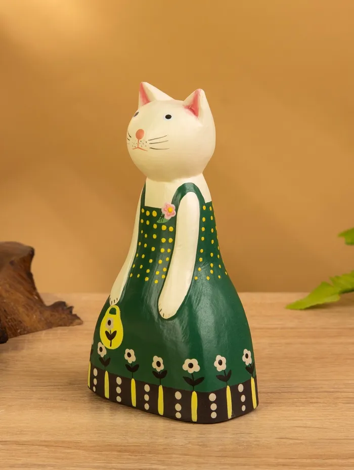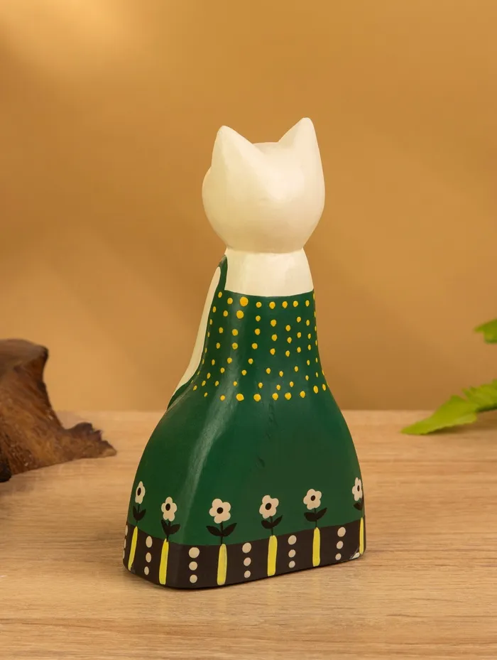 Сувенир «Белая кошка в зелёном платье», 9×5×15.5 см, дерево — Характеристики