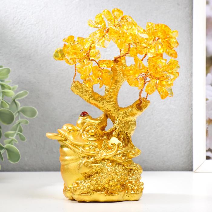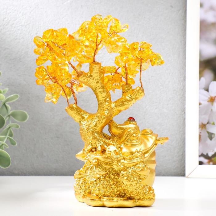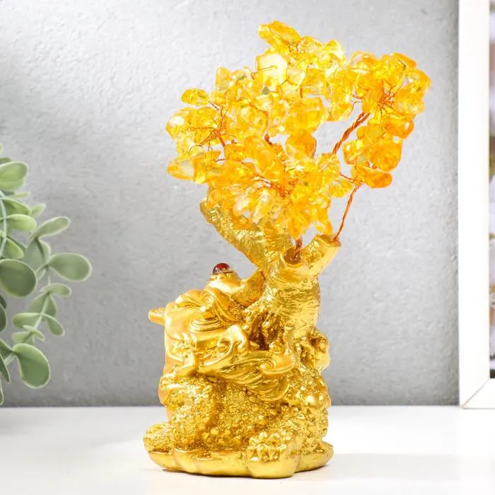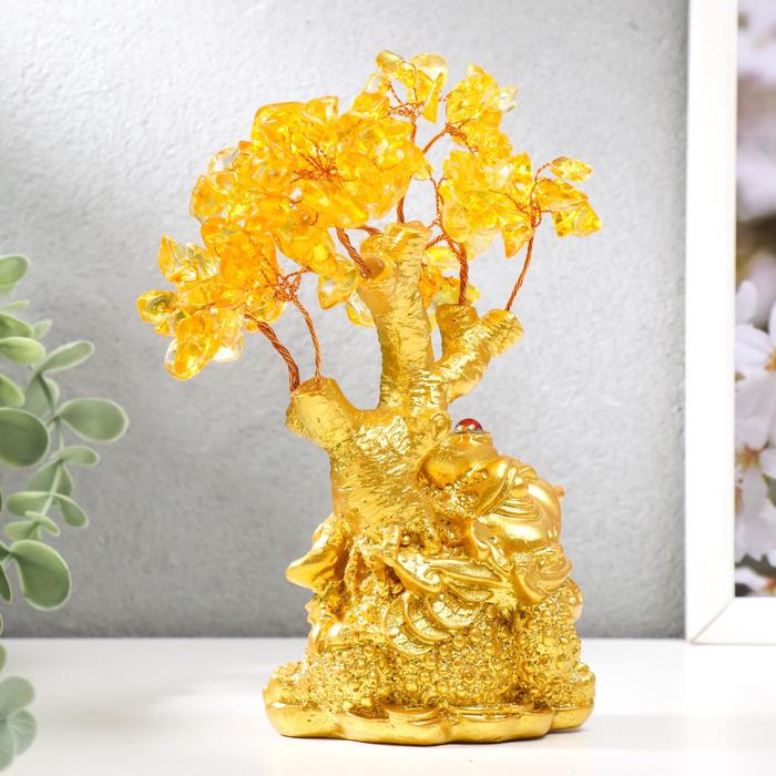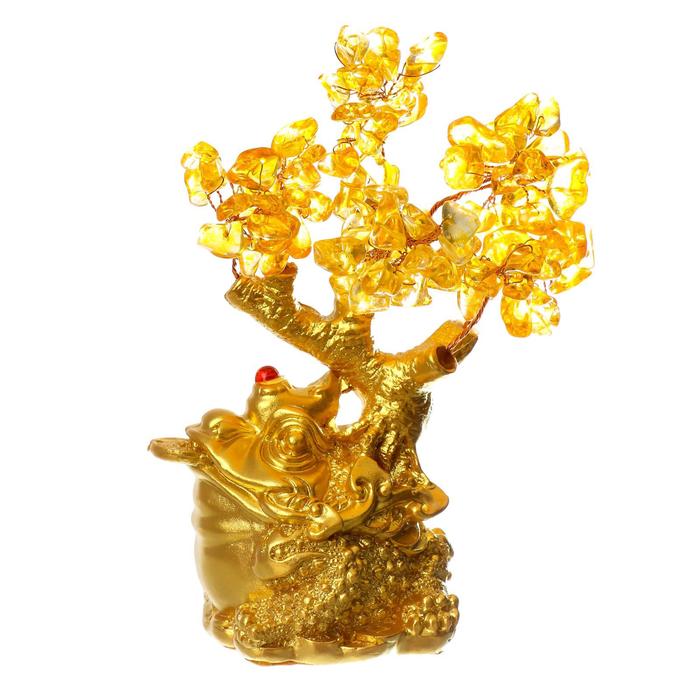 Сувенир бонсай 108 камней "Денежная жаба у дерева с янтарём" 17х14х8 см — Характеристики