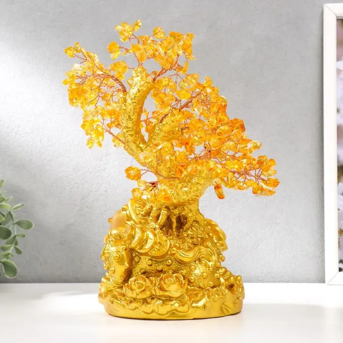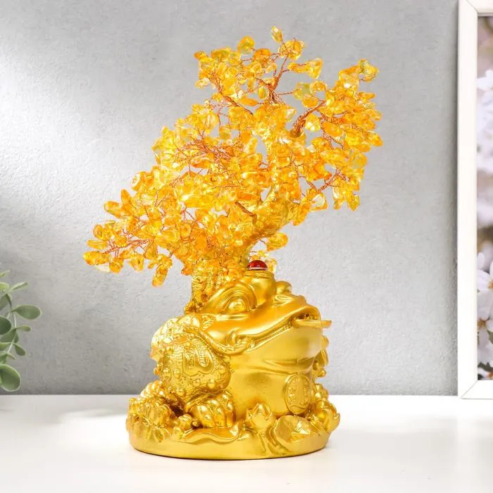 Сувенир бонсай 240 камней "Денежная жаба у янтарного дерева" 25х19х13 см — Характеристики