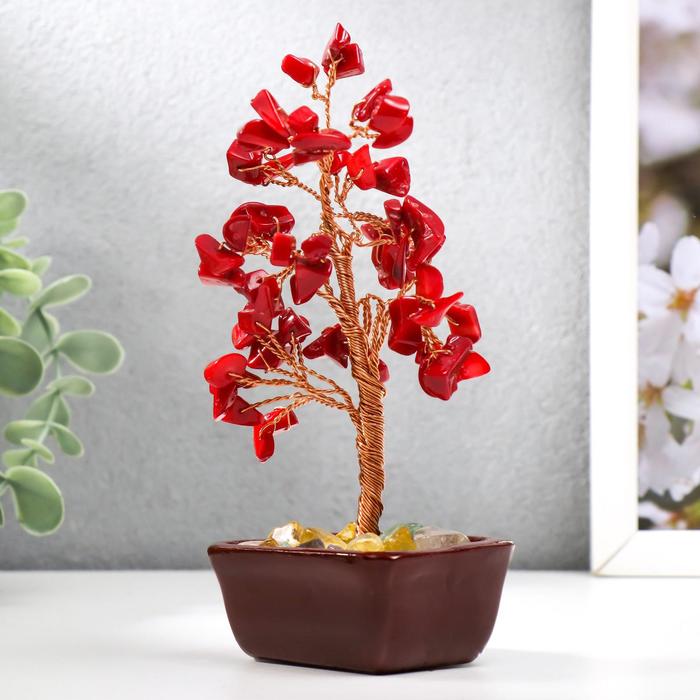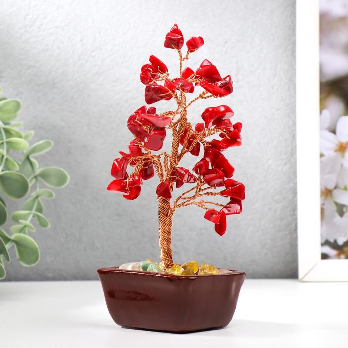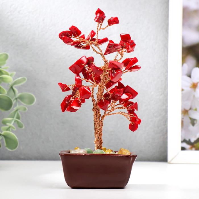 Сувенир бонсай 60 камней "Денежное дерево с рубинами" 13х7х5 см — Характеристики