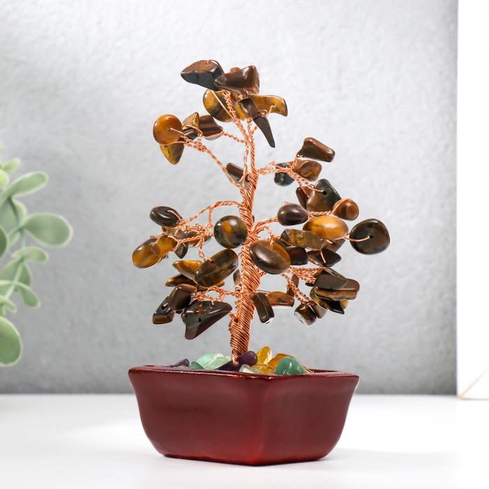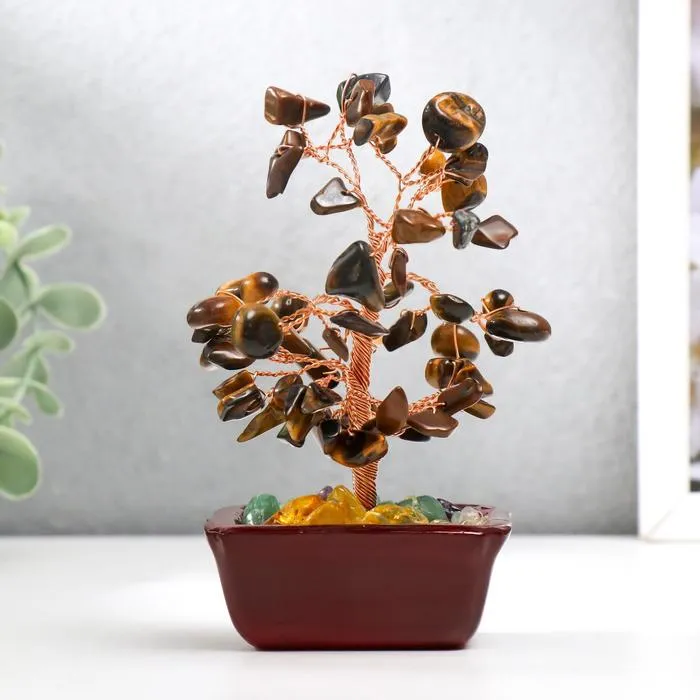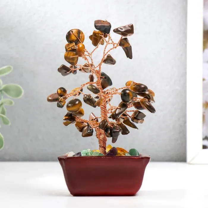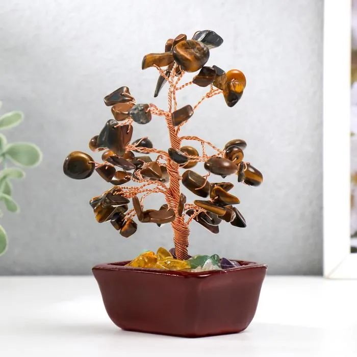 Сувенир бонсай 60 камней "Денежное дерево с тигровыми кристаллами" 13х7х5 см — Характеристики