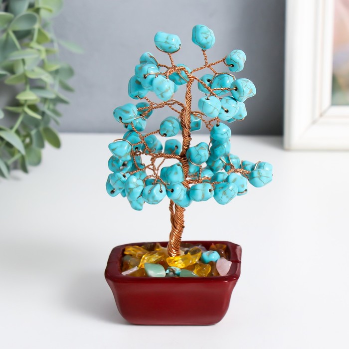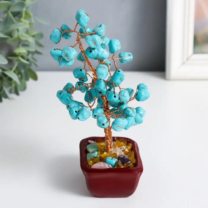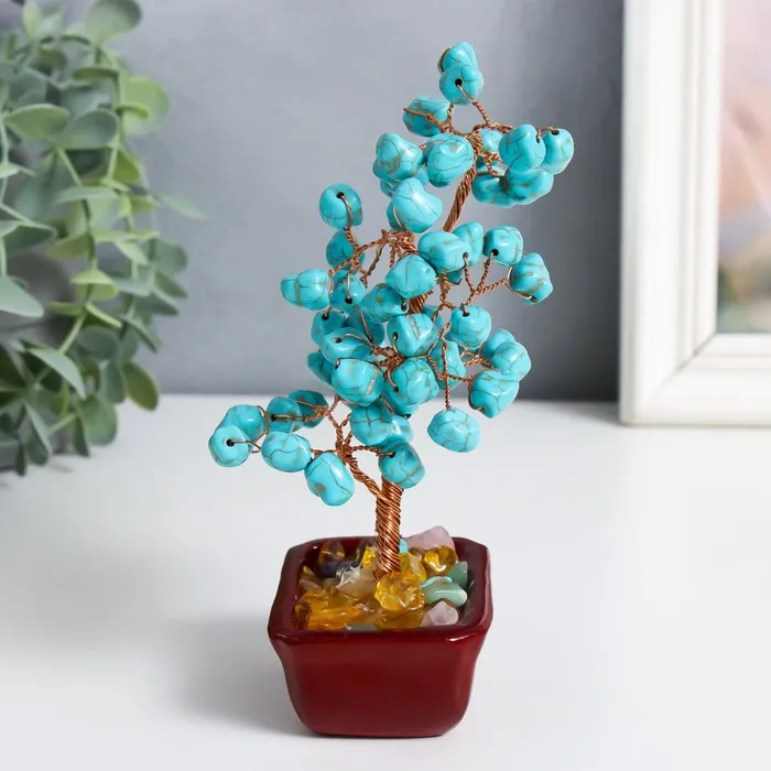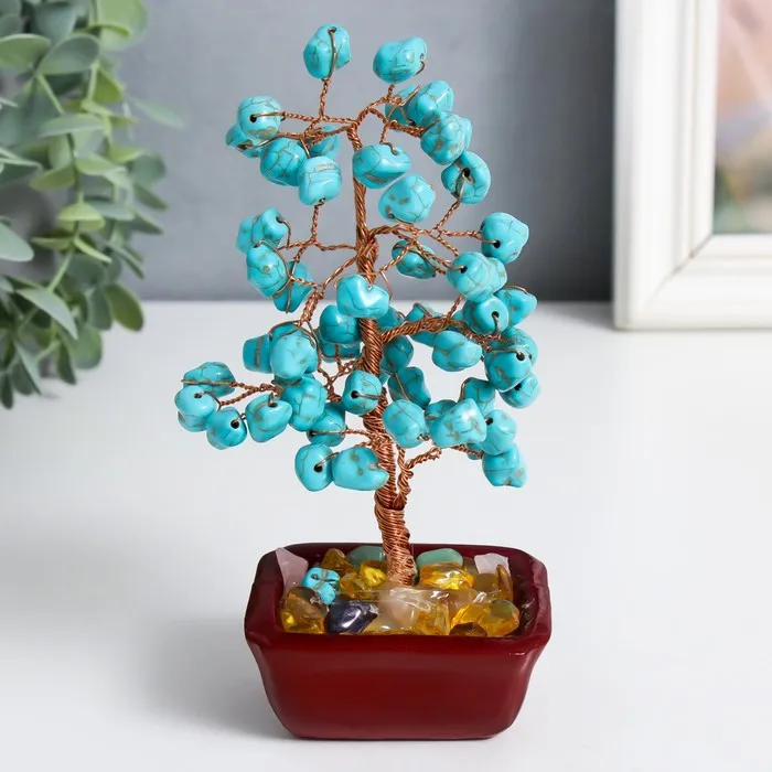 Сувенир бонсай "Денежное дерево с бирюзой" 60 камней 16х7,5х5,5 см — Характеристики