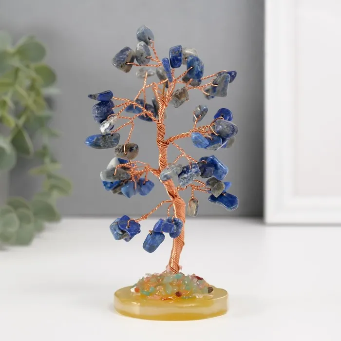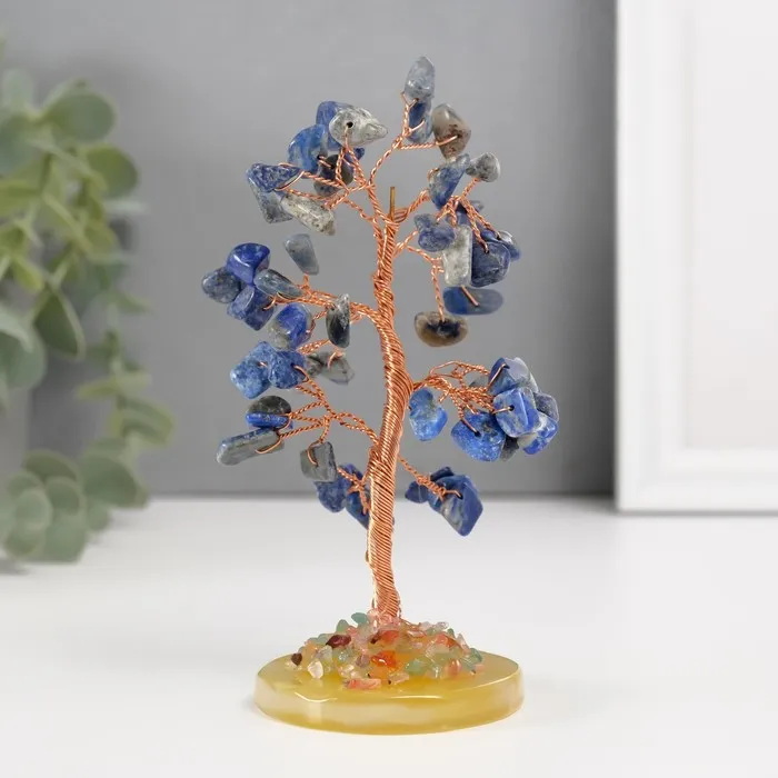 Сувенир бонсай "Денежное дерево" синий 60 камней 5,5х5,5х15,5 см — Характеристики