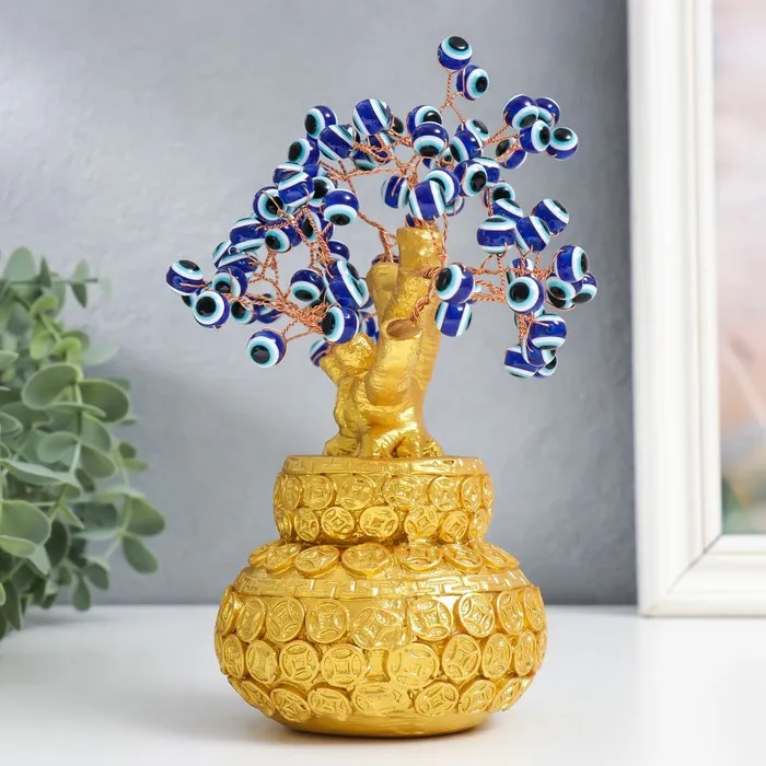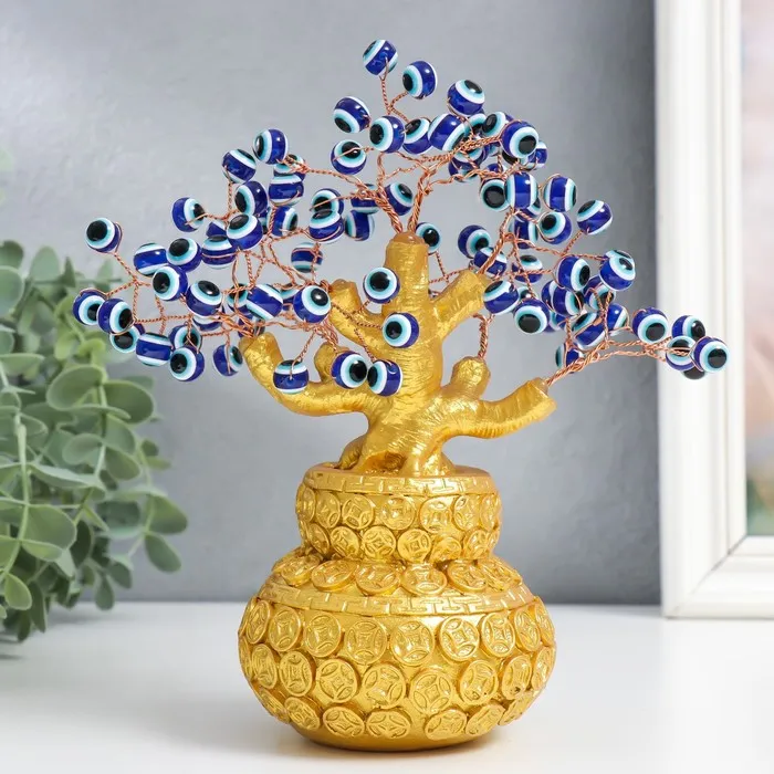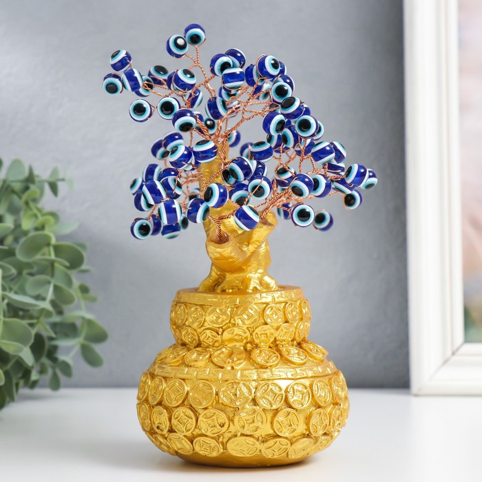 Сувенир бонсай "Денежное дерево в золотом горшке" 96 глазков 20х9х17 см — Характеристики