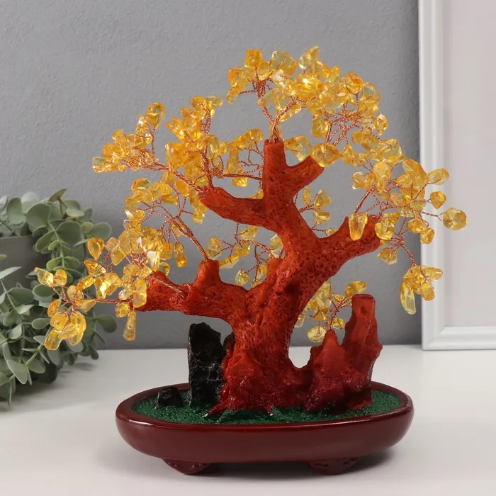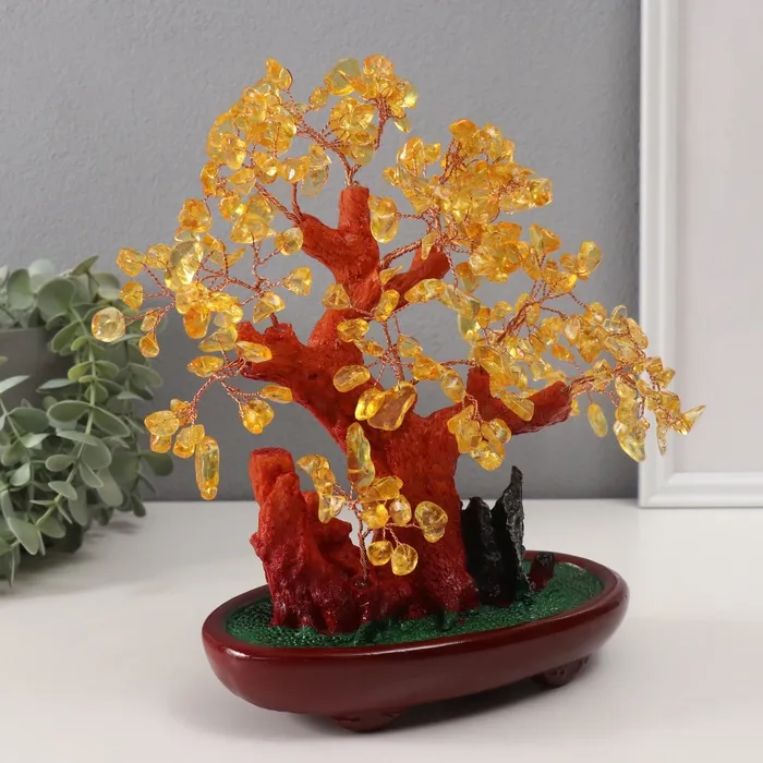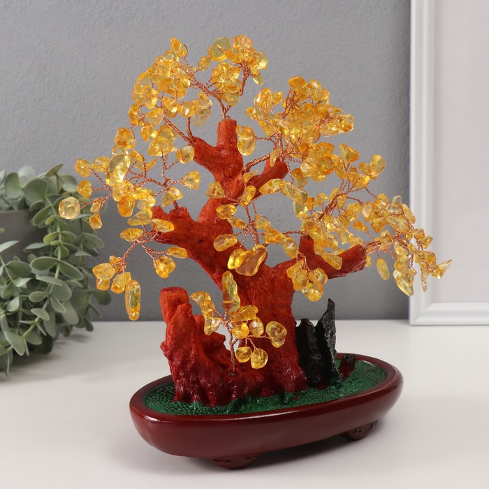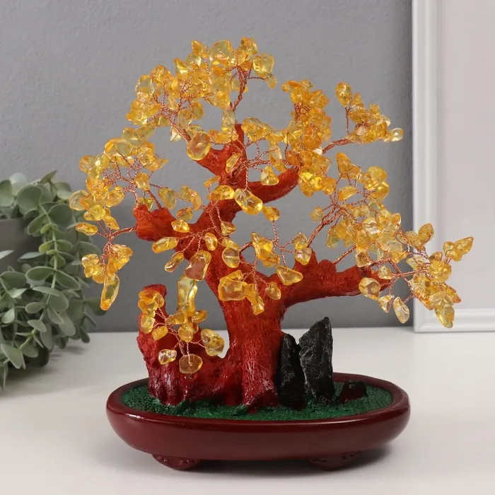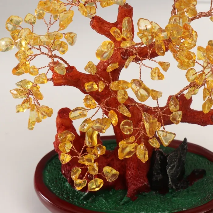 Сувенир бонсай "Янтарное денежное дерево" 252 камня 25х22х11 см — Характеристики