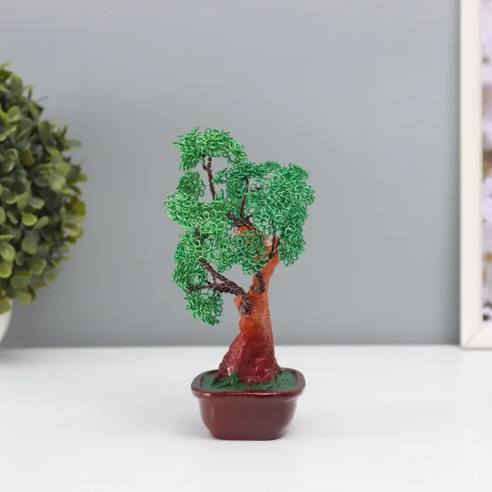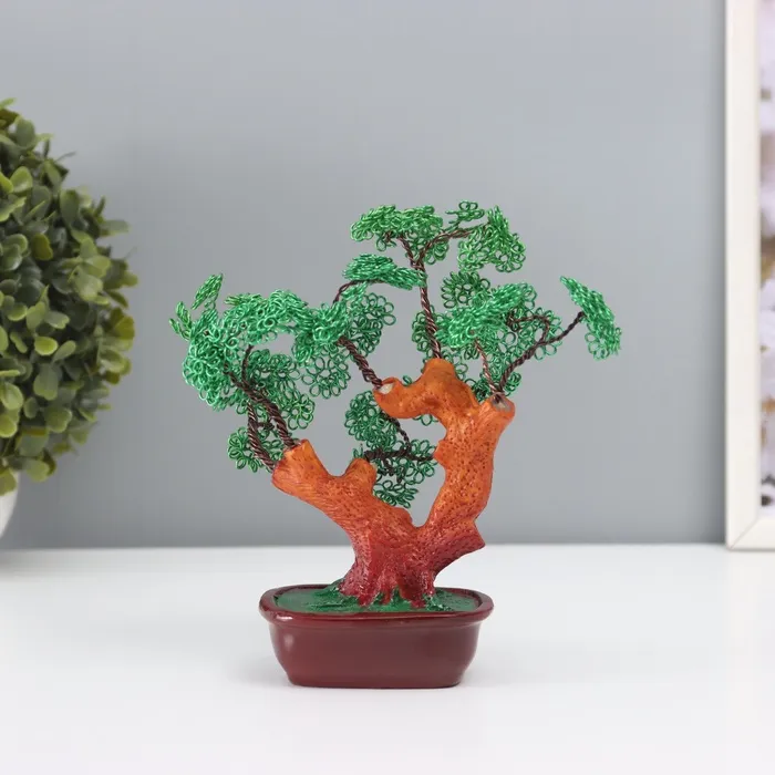 Сувенир бонсай полистоун, металл "Дерево счастливой жизни" зелёное 8х17х16 см — Характеристики