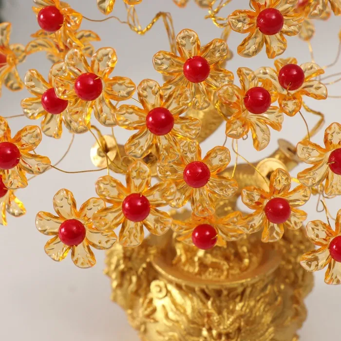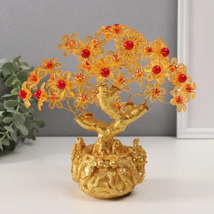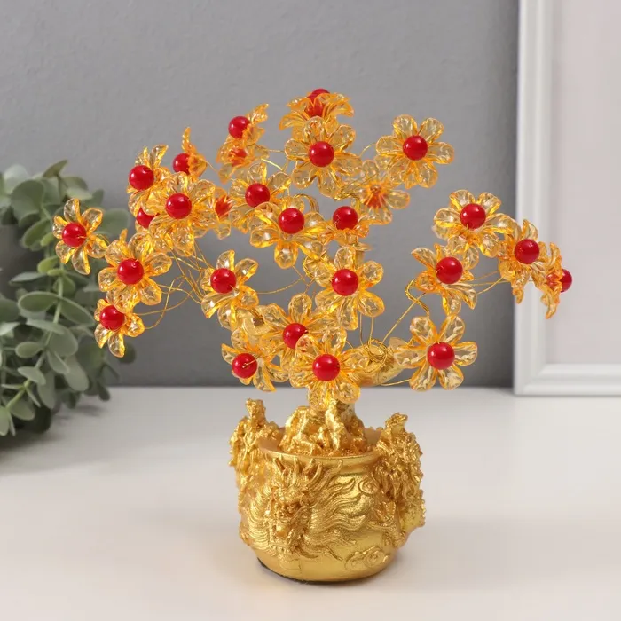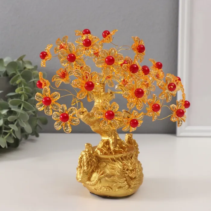 Сувенир бонсай "Цветочное денежное дерево в мешке с драконами" 35 цветов 18х18х7,5 см — Характеристики