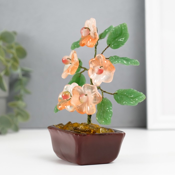Сувенир бонсай "Дерево с персиками в чаше богатства" розовый 10 персиков 9х9х14 см