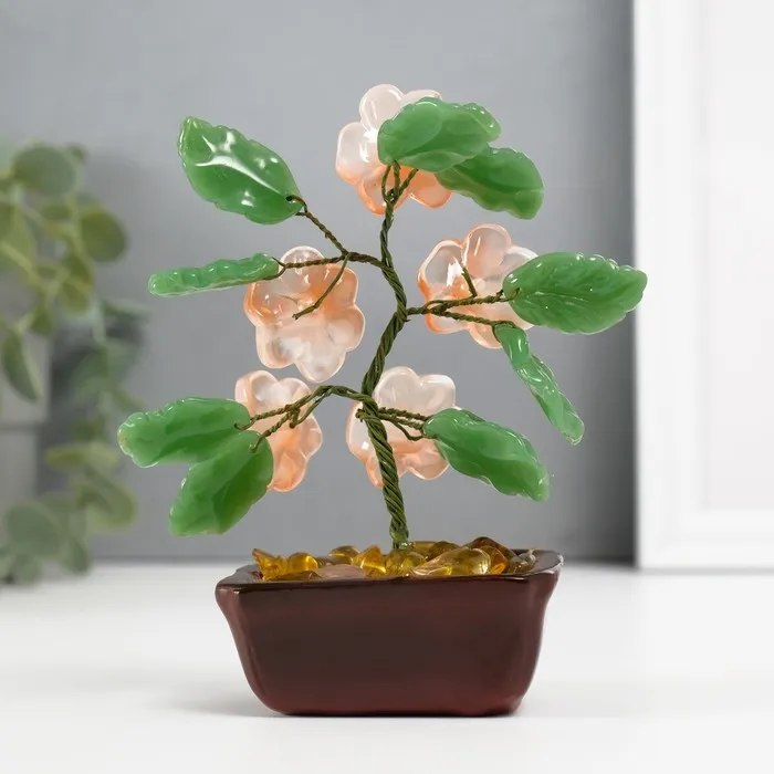 Сувенир бонсай "Цветочное дерево" розовый 5 цветков 7х5,2х13 см — Характеристики