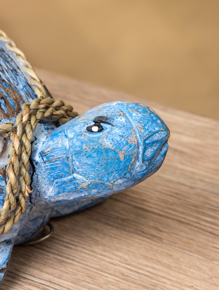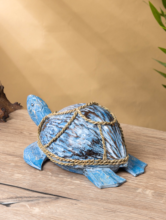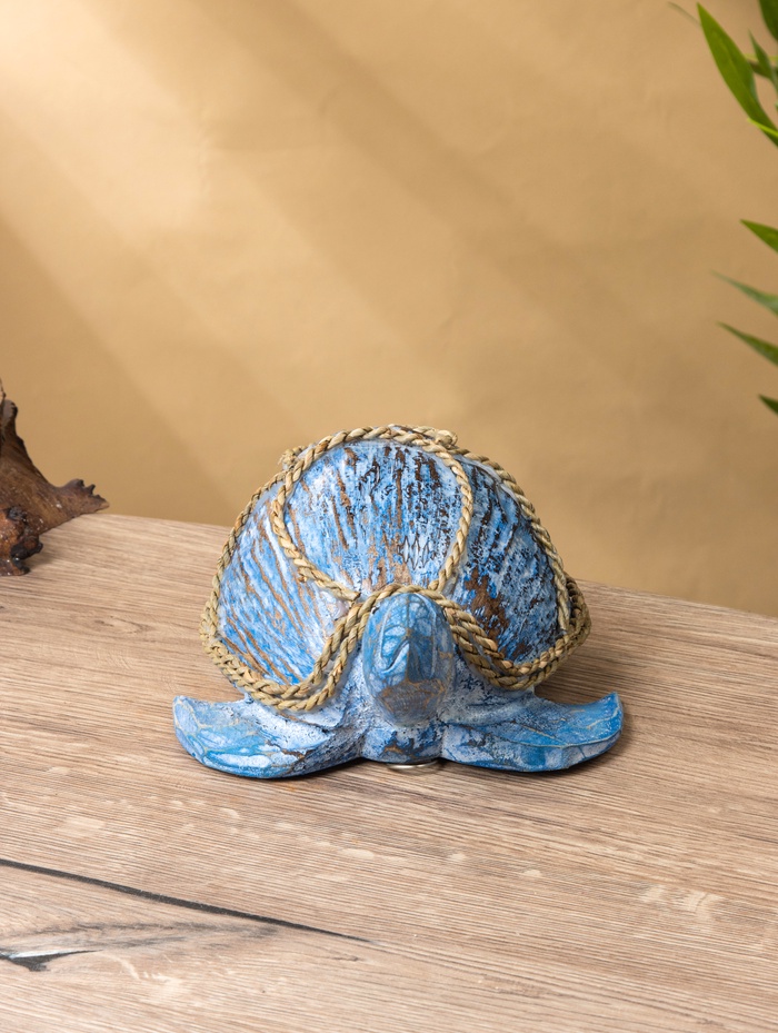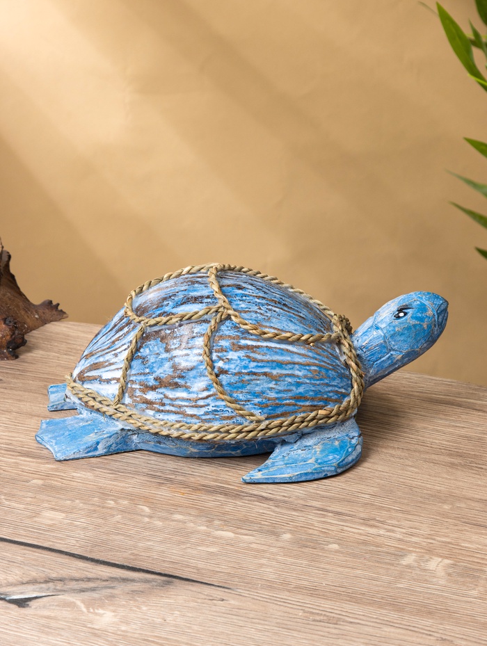 Деревянная черепаха из сиграсса — скульптура в нежно-голубом оттенке, выполненная вручную без лишних деталей. Её плоская форма (всего 10 см в высоту) и широкий панцирь делают её идеальной для размещения на столе, полке или даже в ванной — как тихий символ спокойствия и устойчивости.