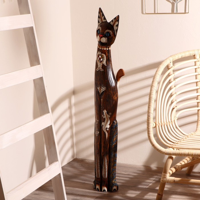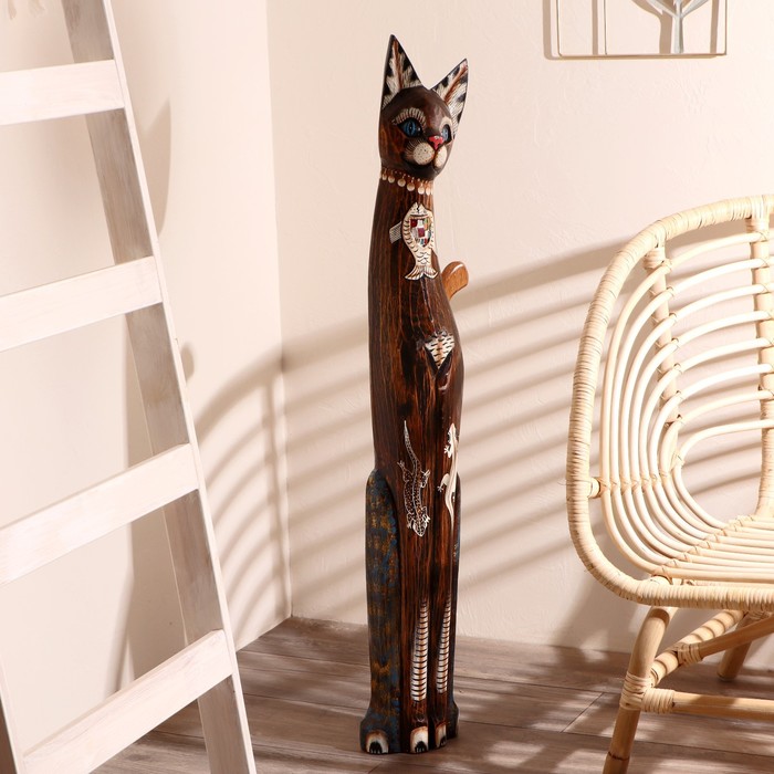 Сувенир дерево "Кошка морская с рыбкой и ящерками" 100х16х7 см — Характеристики
