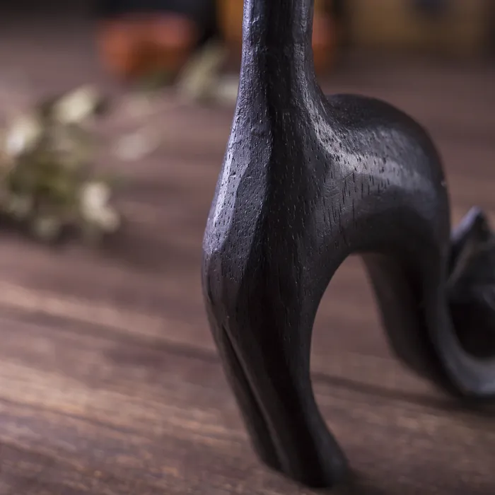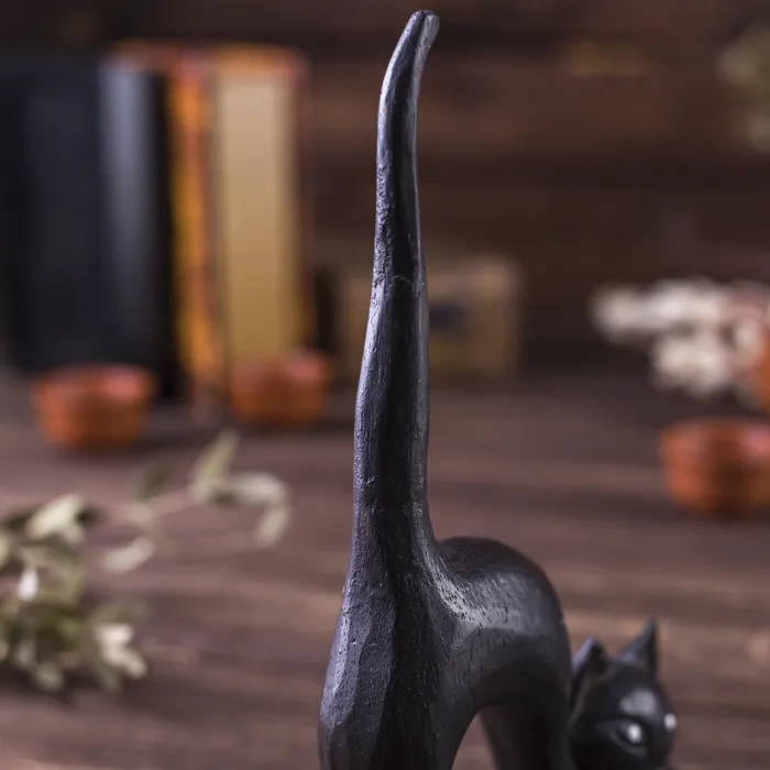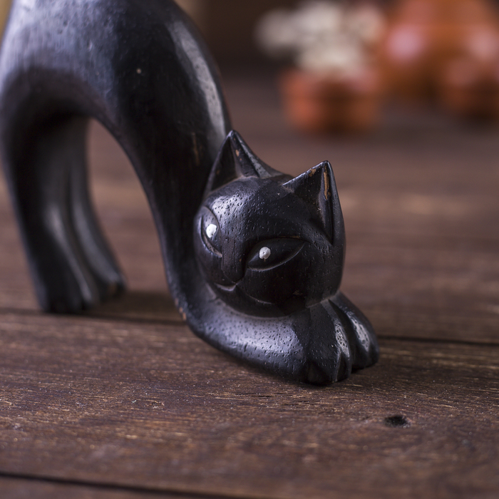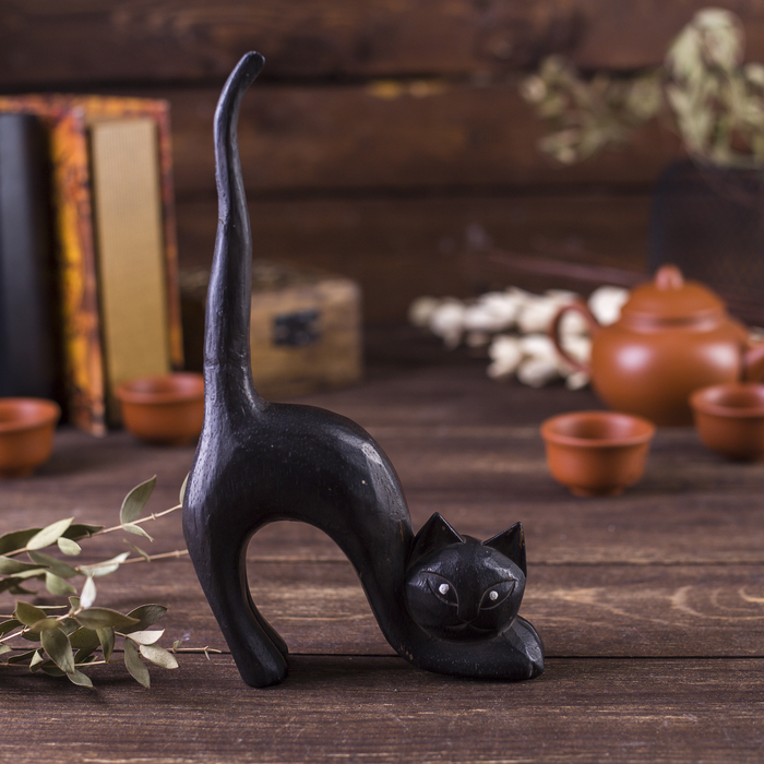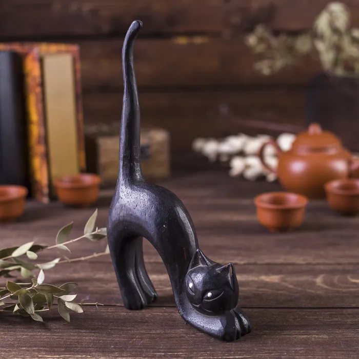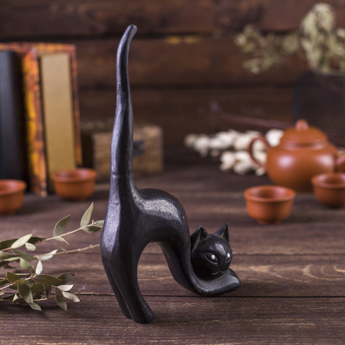 Сувенир дерево "Кошка под кольца черная выгнутая" 15х3х25 см — Характеристики