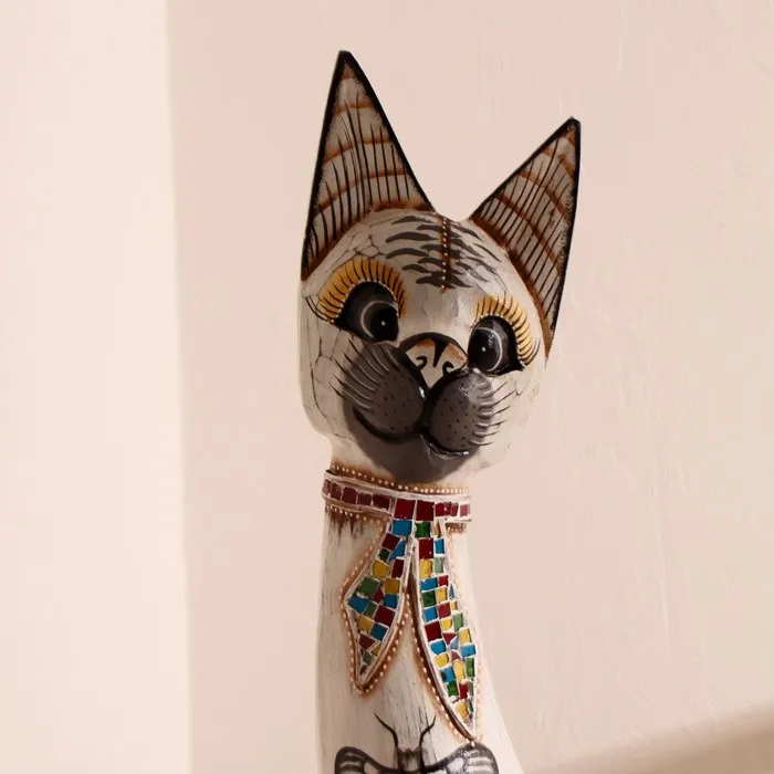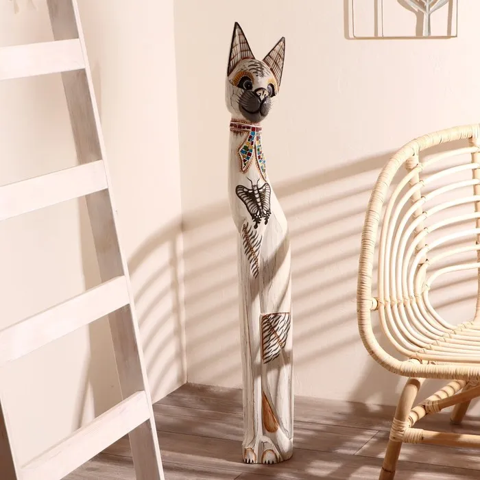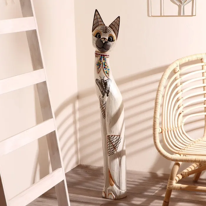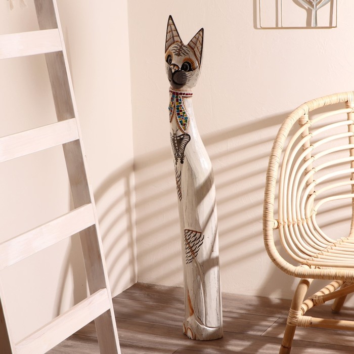 Сувенир дерево "Кошка с бабочкой и бантом из мозаики" белая 100х16х7 см — Характеристики