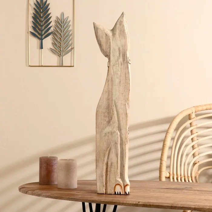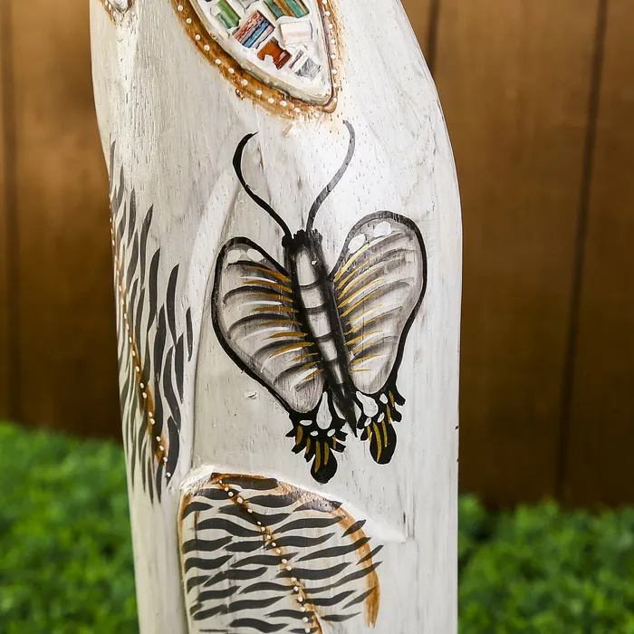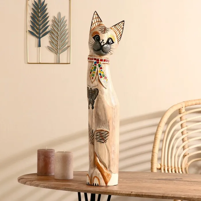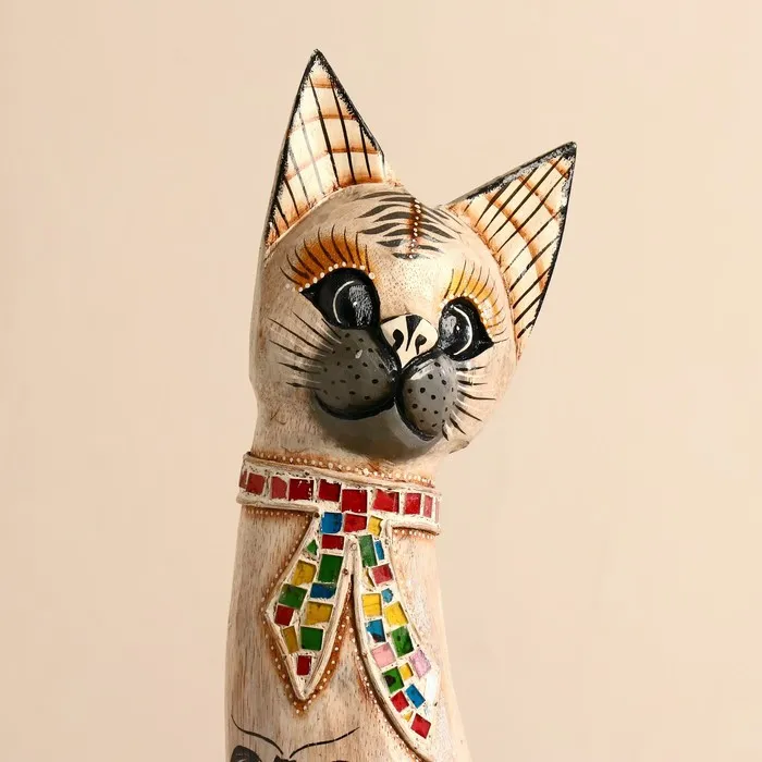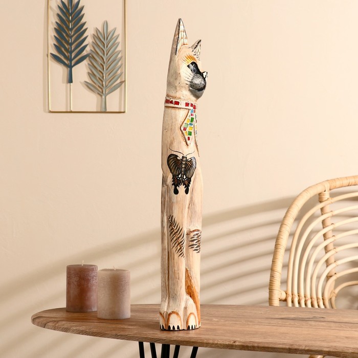 Сувенир дерево "Кошка с бабочкой и бантом из мозаики" белая 60х12х6 см — Характеристики